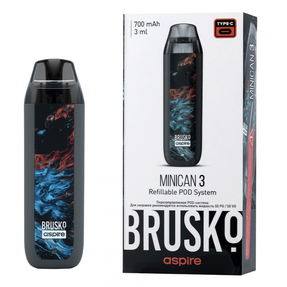 Перезаправляемая Под-Система Бруско Миникан 3 (Brusko Minican 3) 700 mah, Серый Флюид - купить в Гудермесе